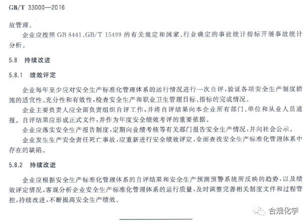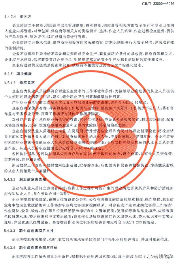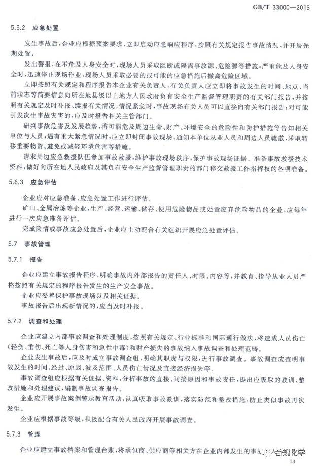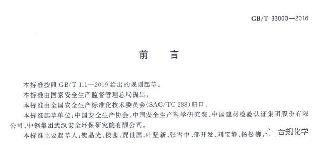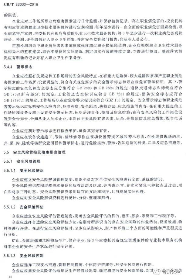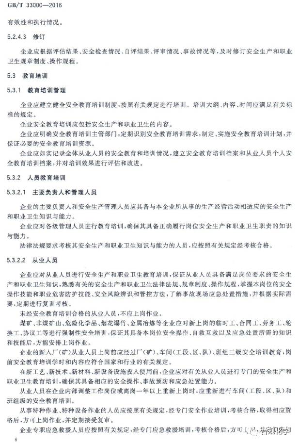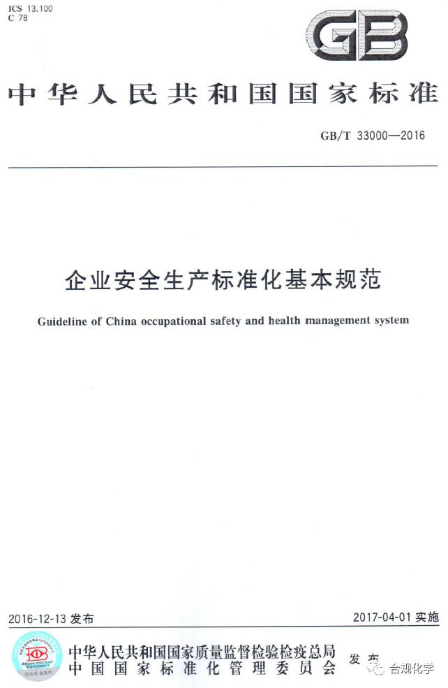 中华人民共和国国家质量监督检验检疫总局和中国国家标准化管理委员会2016年12月13日发布《GB/T 33000—2016 企业安全生产标准化基本规范》,该标准于2017年4月1日起实施。